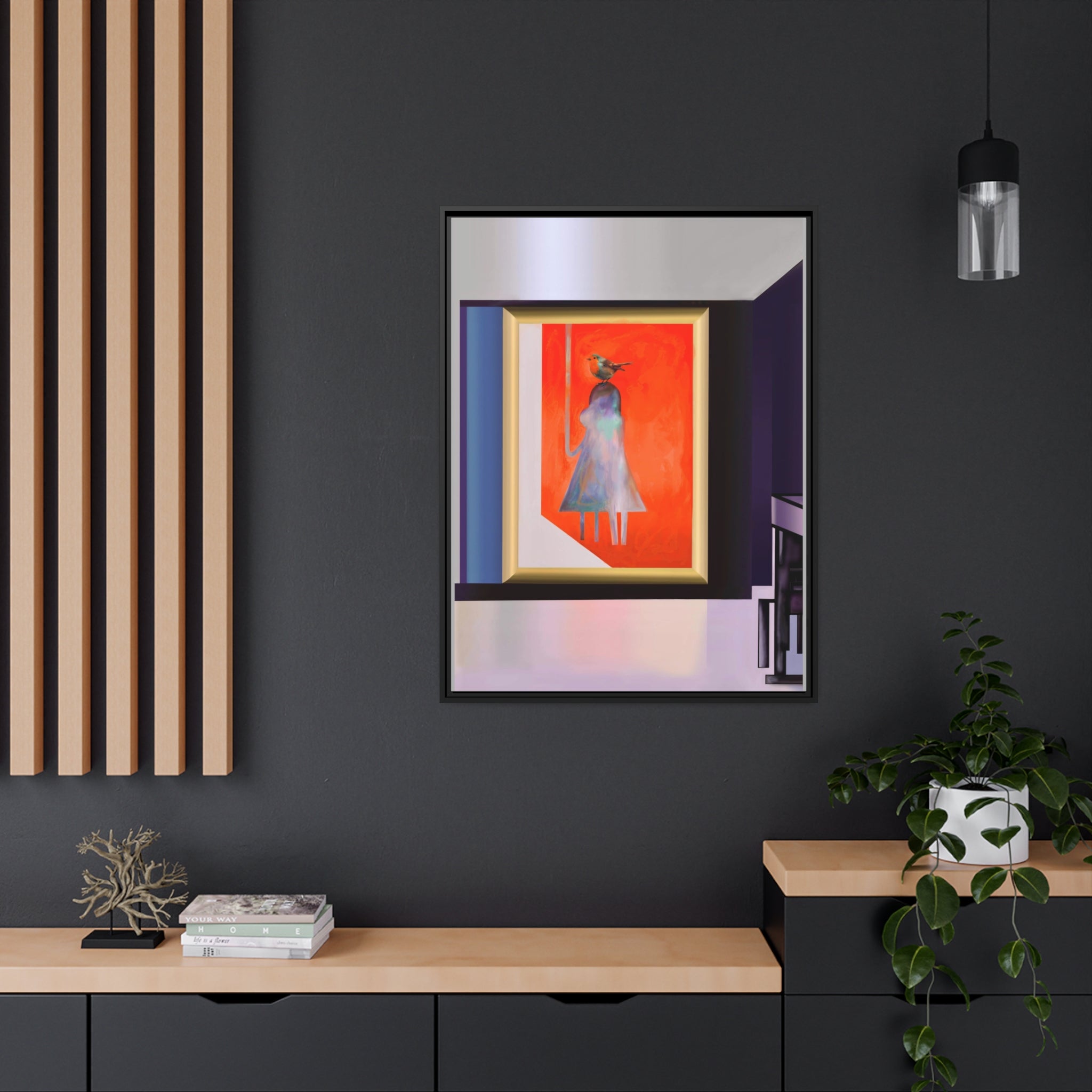 - Black pinewood frame.