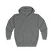 This unisex full zip hoodie keeps a promise of being comfortable with style. Small hidden opening for earphone cord feed and hidden earphone loops make it perfect for listening favorite tracks on the run.